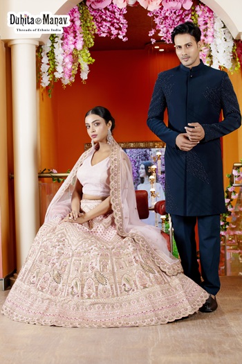 Brand: Duhita Manav Set Includes: Bridal Lehenga (Women) & Sherwani Set (Men)