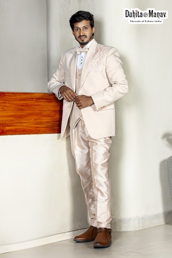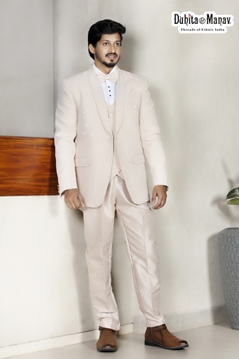 Cream Three-Piece Formal Suit for Men | Duhita & Manav