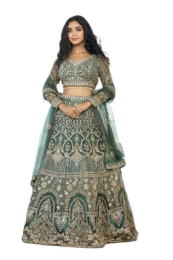 Make a regal bridal statement with this stunning green lehenga, designed with rich embroidery and luxurious detailing. Its vibrant hue and elegant craftsmanship make it a perfect choice for weddings and grand celebrations.